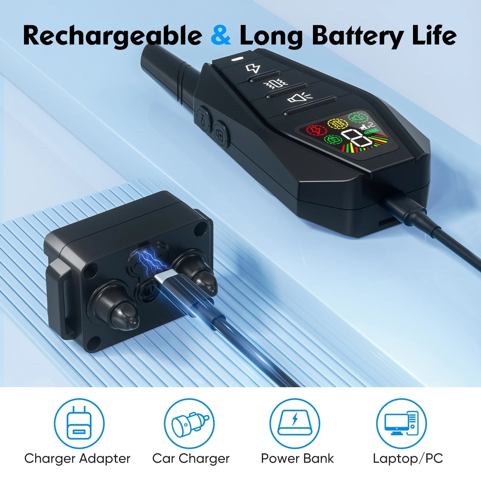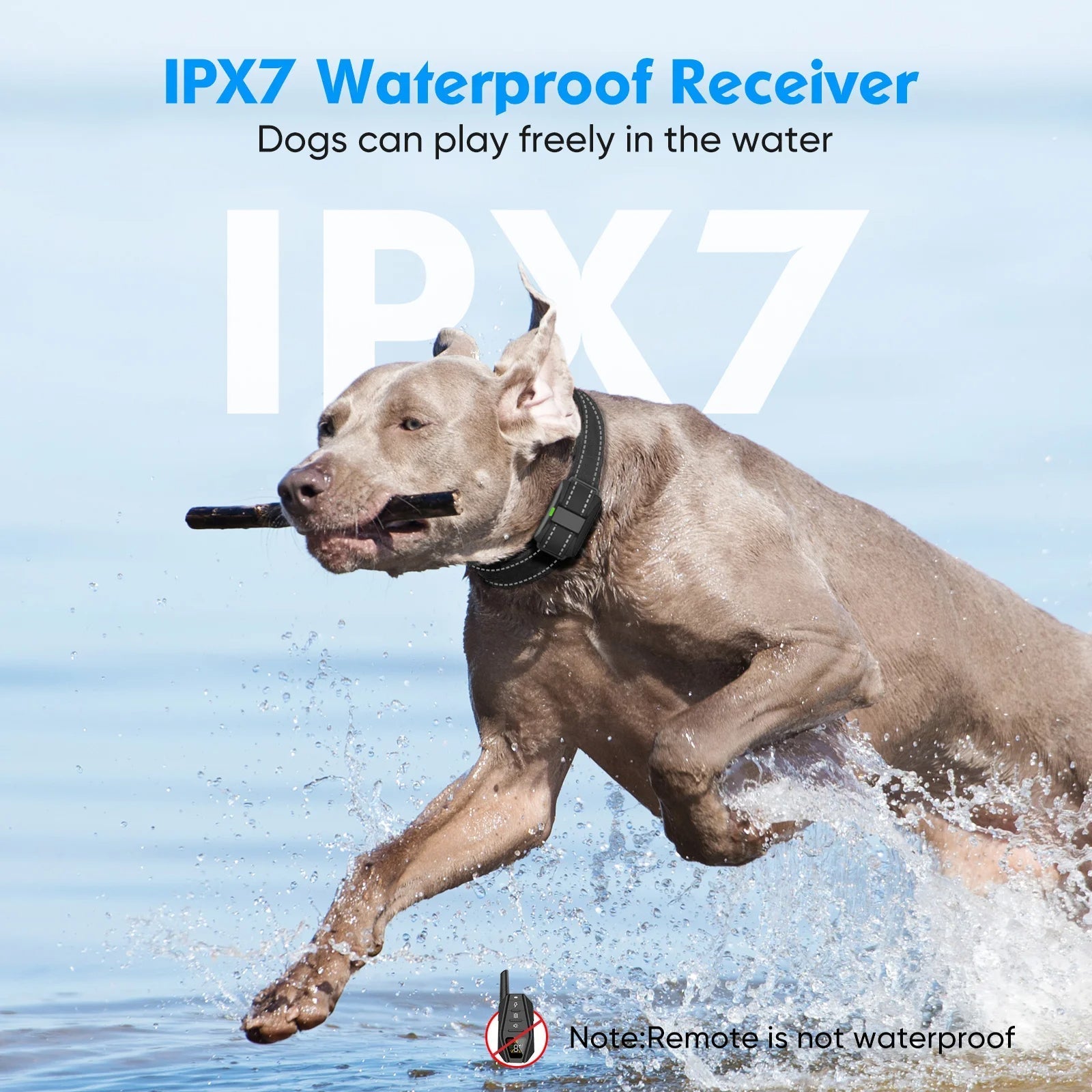 Of je nu in de tuin bent, op het veld of in het park β met een bereik tot 1000 meter heb je altijd volledige controle. De halsband is waterdicht en robuust, dus geschikt voor elk seizoen.