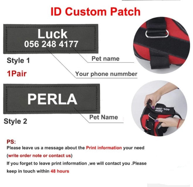 Het harnas wordt op maat bedrukt op basis van wat u hebt ingevoerd in het tekstvak van de aangepaste patch. U kunt ook kiezen uit verschillende tekstmaterialen zonder extra kosten. Het hondentuig is verkrijgbaar in de maten XS tot en met XXL.