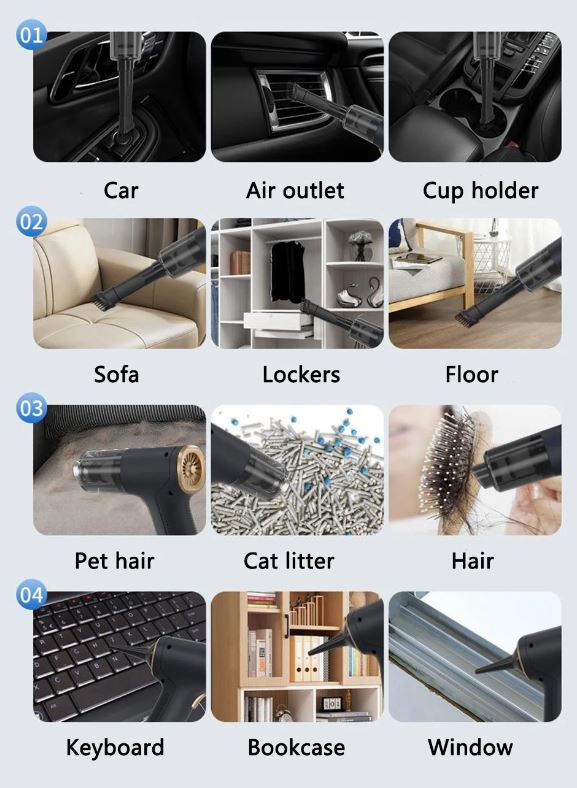 Transformeer de manier waarop u uw auto schoonmaakt met onze krachtige draadloze autostofzuiger - draagbaar en oplaadbaar. Dit compacte maar krachtige apparaat is ontworpen om uw autoreinigingservaring moeiteloos en efficiënt te maken. Zeg vaarwel tegen rommelige kabels en hallo tegen een onberispelijk interieur van uw voertuig.