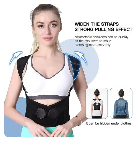 - Verlichting van pijn: Biedt effectieve verlichting van rug-, schouder- en nekpijn door je houding te corrigeren.
