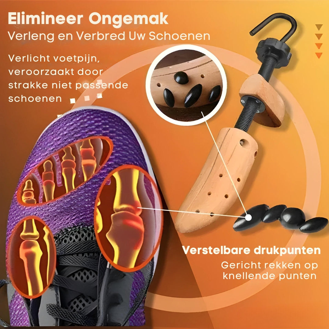 Verstelbare houten schoenrekker - Twee-weg stretch voor perfecte pasvorm