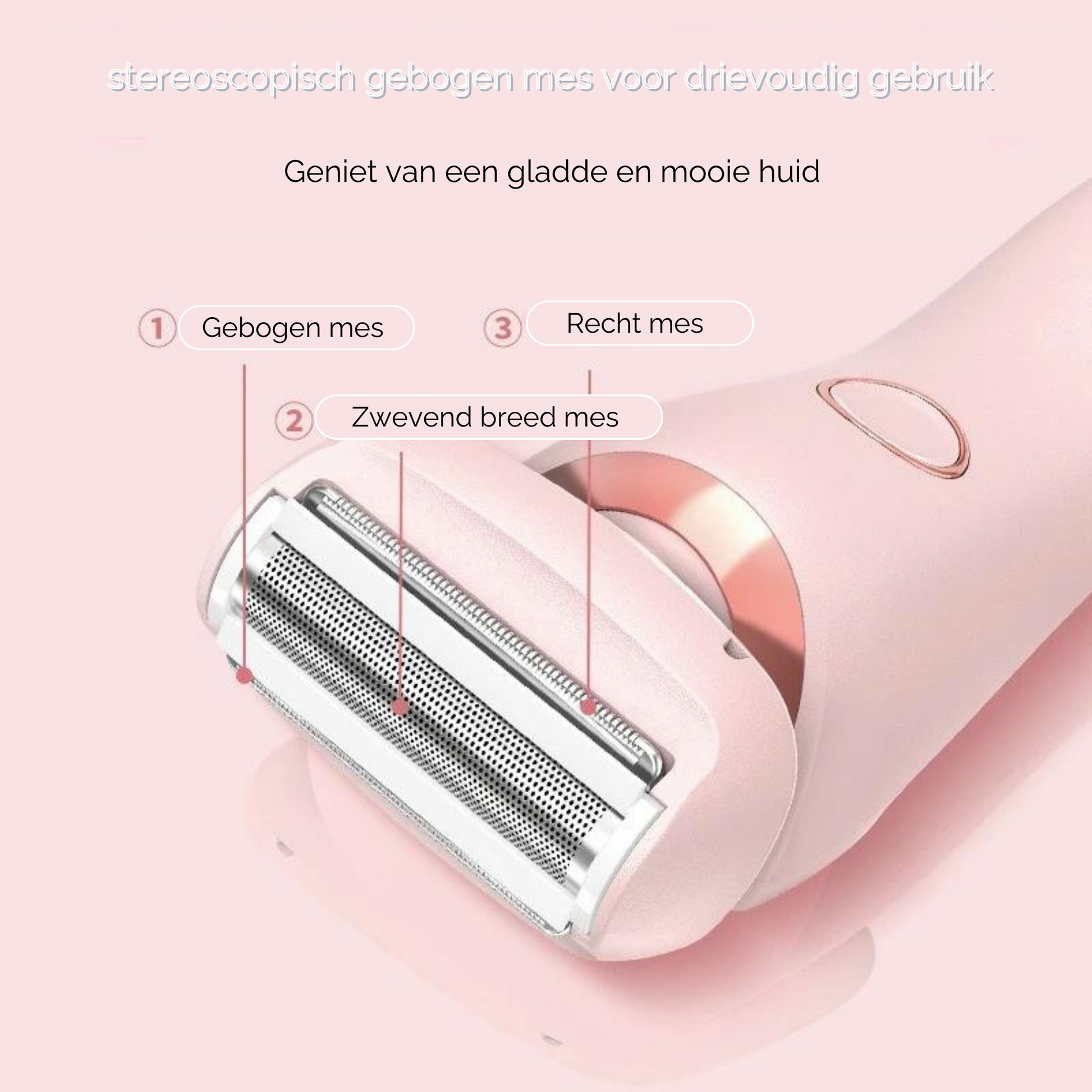 - Gebogen mes: Volgt de rondingen van je lichaam voor een nauwkeurige scheerbeurt.